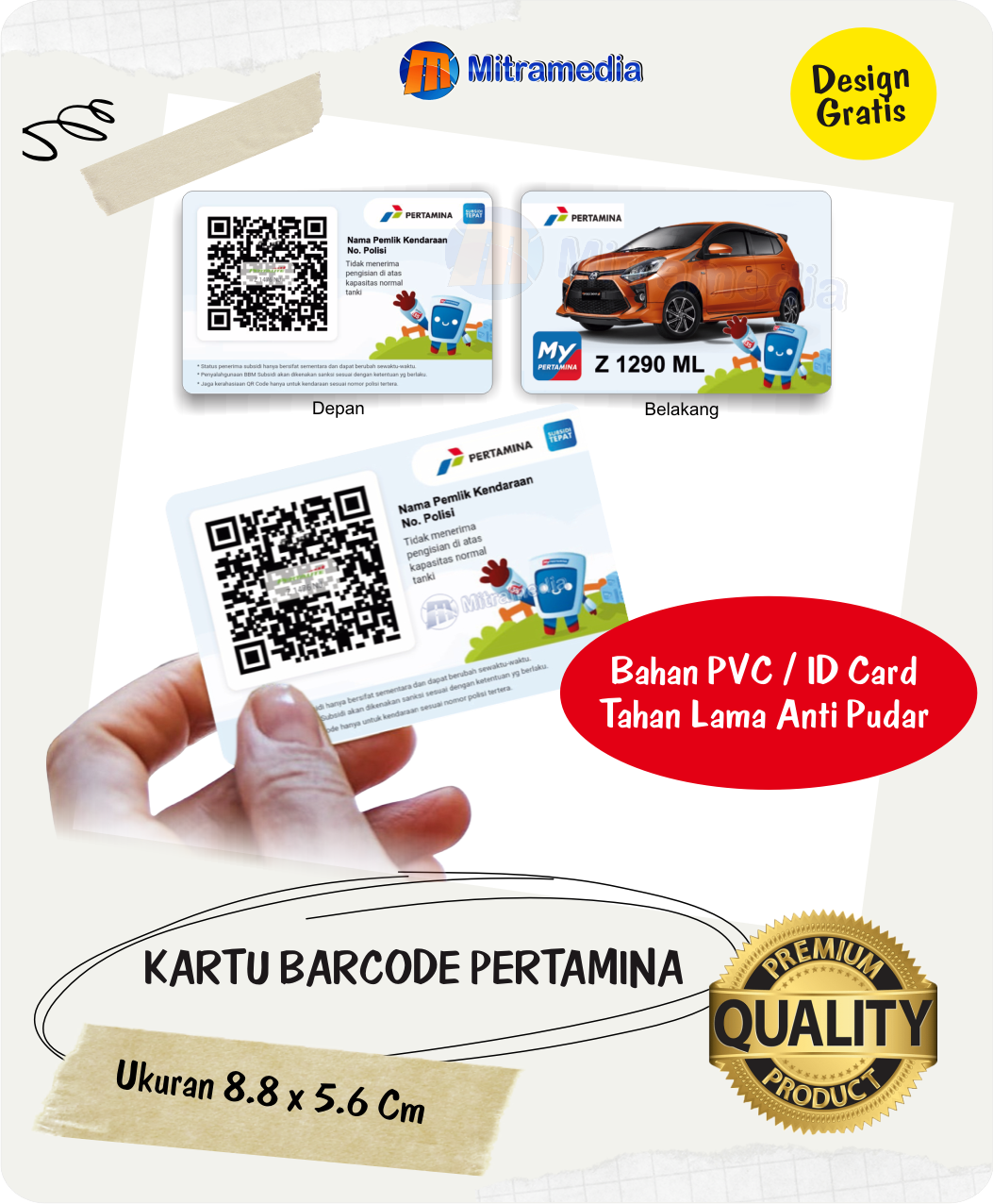 .. Cetak Kartu Barcode Pertamina Bahan PVC Amti Pudar Ukuran 5.64 x 8.86 cm Ketebalan 8 mm Dicetak Menggunakan Printer Epson / Laser